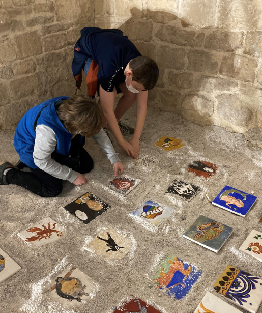 S’inspirant de ce monument caennais emblématique, les enfants et adolescents du Centre d’animation ont participé à une série d’ateliers avec l’artiste et ont réalisé des fresques, peintures, graffitis et gravures. Les thèmes des productions sont variés : de la copie des traces du passé pour comprendre la construction matérielle de ces témoignages de la préhistoire à l’époque contemporaine, jusqu’à la création personnelle et subjective, accompagnée d’un message laissé pour les générations futures.