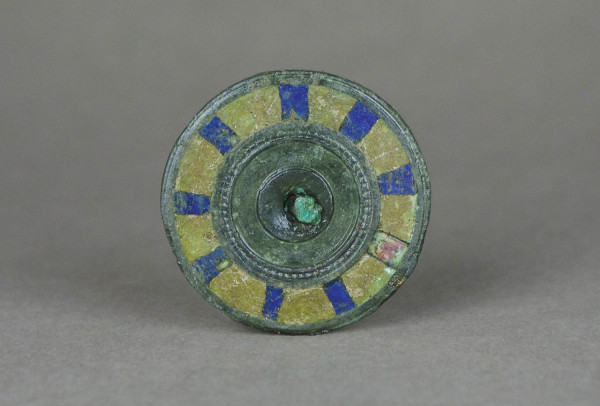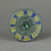 Phalère, élément de décoration, de harnachement en bronze à décor émaillé bicolore.