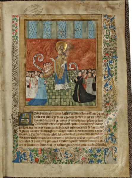 Le Matrologe de la Charité Saint-Nicolas commence en 1452 et se termine en 1789 ; il se caractérise par une exceptionnelle décoration. En effet, chaque page – ou presque – est illustrée de décors issus de la vie quotidienne, ou témoignant des modes iconographiques ou esthétiques des différentes époques ; certaines images sont liées à des évolutions sociales ou culturelles ; d’autres, plus rares, semblent être de discrètes allusions au contexte historique contemporain.